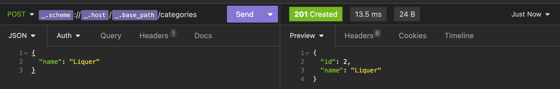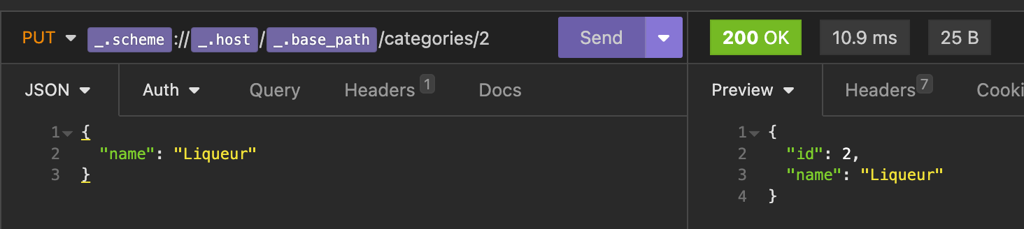 Even more success! Just to recap, we now have a working create API for our categories and the data is being persisted to our PostgreSQL database. Now... You may have noticed... I misspelled "Liquer"! Did I do it on purpose to make our update endpoint more meaningful? Sure, yeah, I definitely did it intentionally. Onward to our update endpoint so we can correct the data!!!