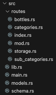We will do the same decomposition for the routes in our main.rs, leaving only our rocket launch function. Don't forget to import your new modules in your file!
